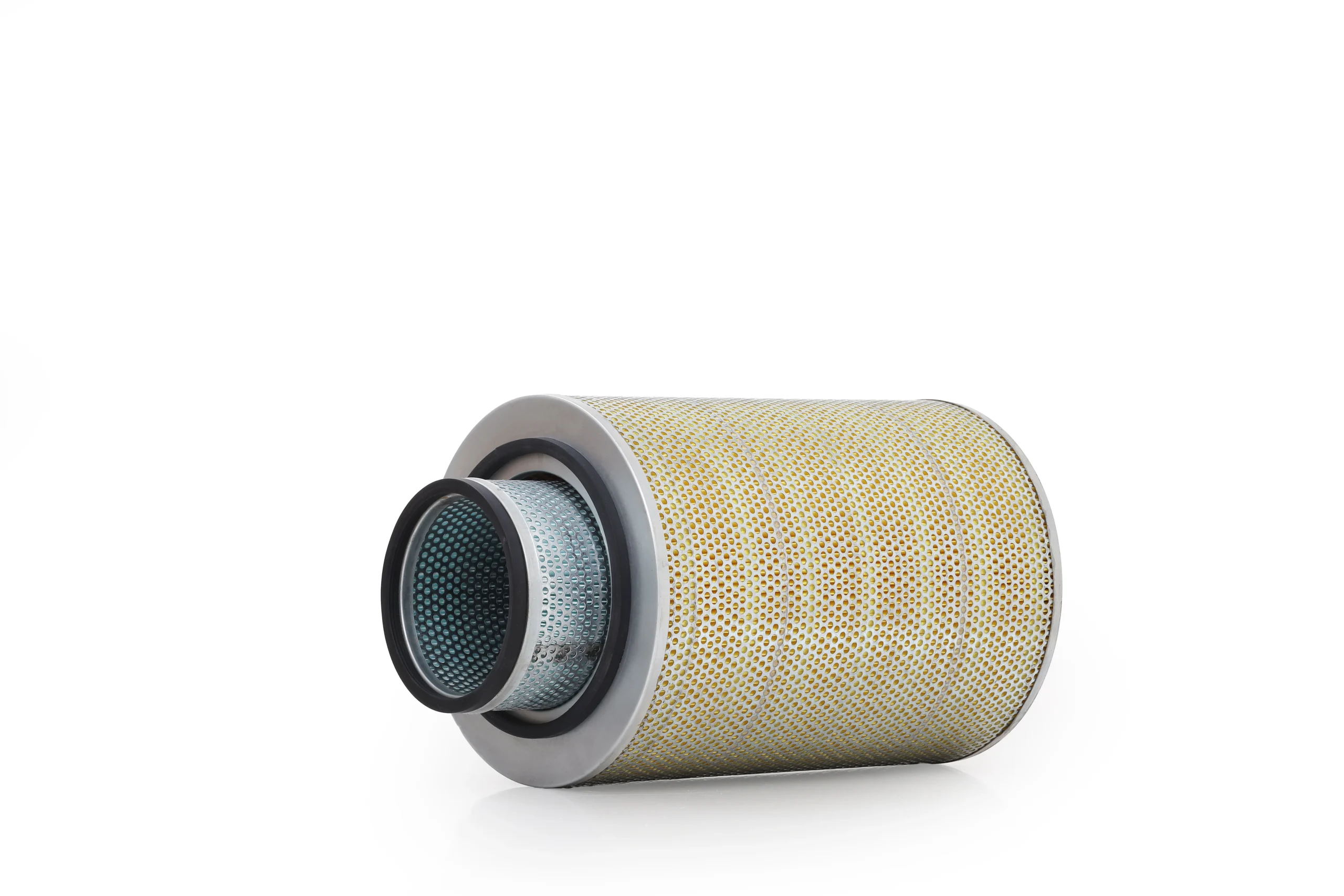 Both filter elements are constructed with high-capacity pleated filtration media and reinforced with durable perforated metal mesh to maintain structural integrity under high airflow and vacuum pressure. The radial seal rubber gasket ensures a secure and airtight fit within the air cleaner housing, preventing dust bypass and ensuring maximum filtration efficiency.